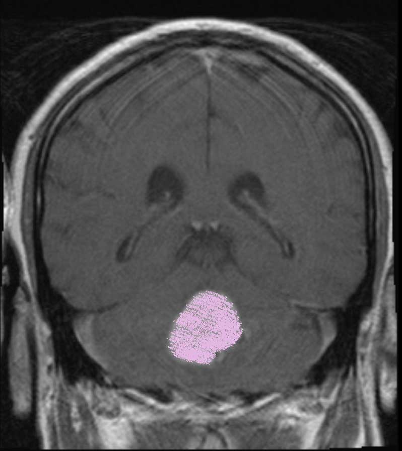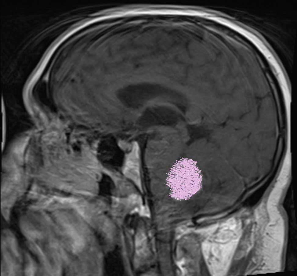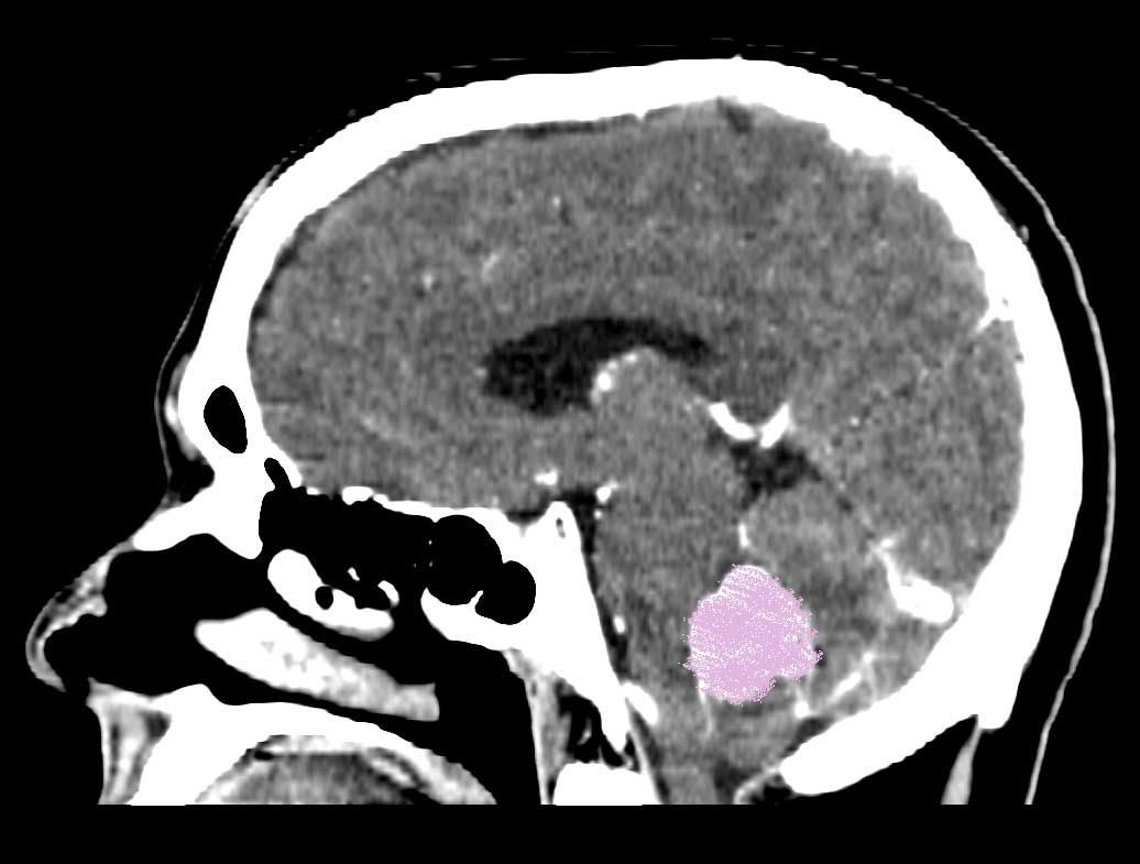 (the lower image shows the Tumor pressing on the brain stem)